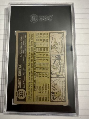 1961 TOPPS #344 SANDY KOUFAX SGC 8 NM-MT HOF DODGERS